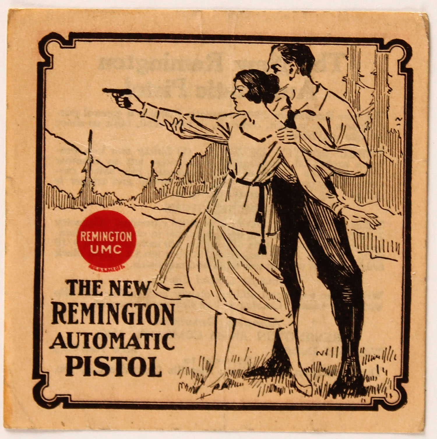 Remington UMC Insert for New Automatic Pistol, back has detail info on the new pistol. Grade: Very Good + - Value: 20 to 80