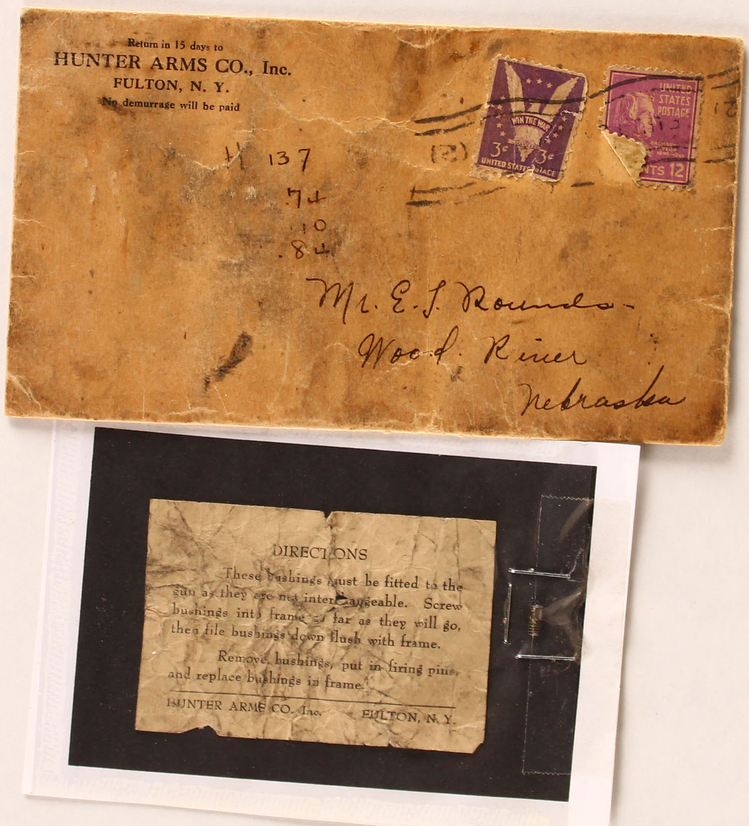 Hunter Arms Co. Parts Envelope with insert. Grade: Very Good - Value: 4 to 30