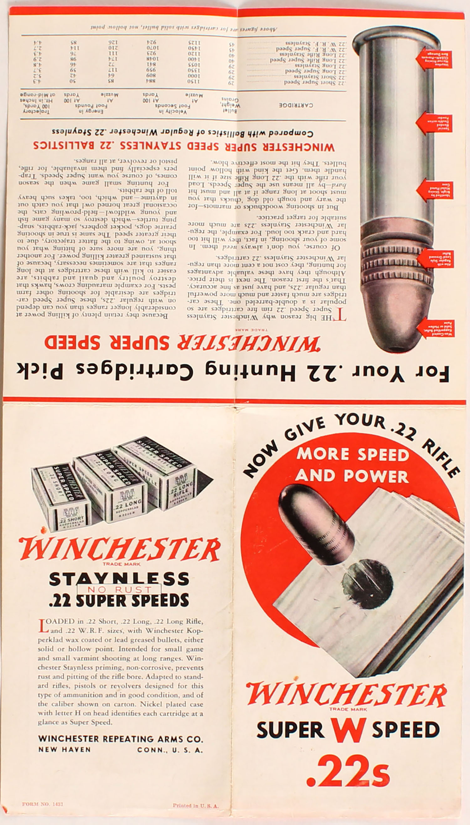 Winchester .22 Super W Speed brochure. Grade: Excellent - Value: 2 to 60