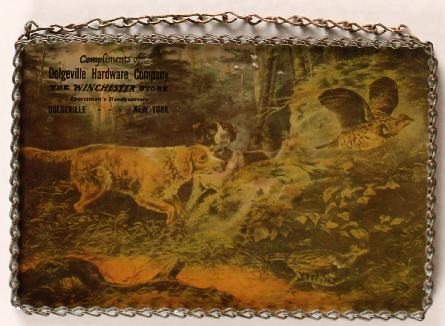 Winchester Chain Art dogs on pint with grouse, 7'' x 5''. Grade: Excellent - Value: 20 to 150