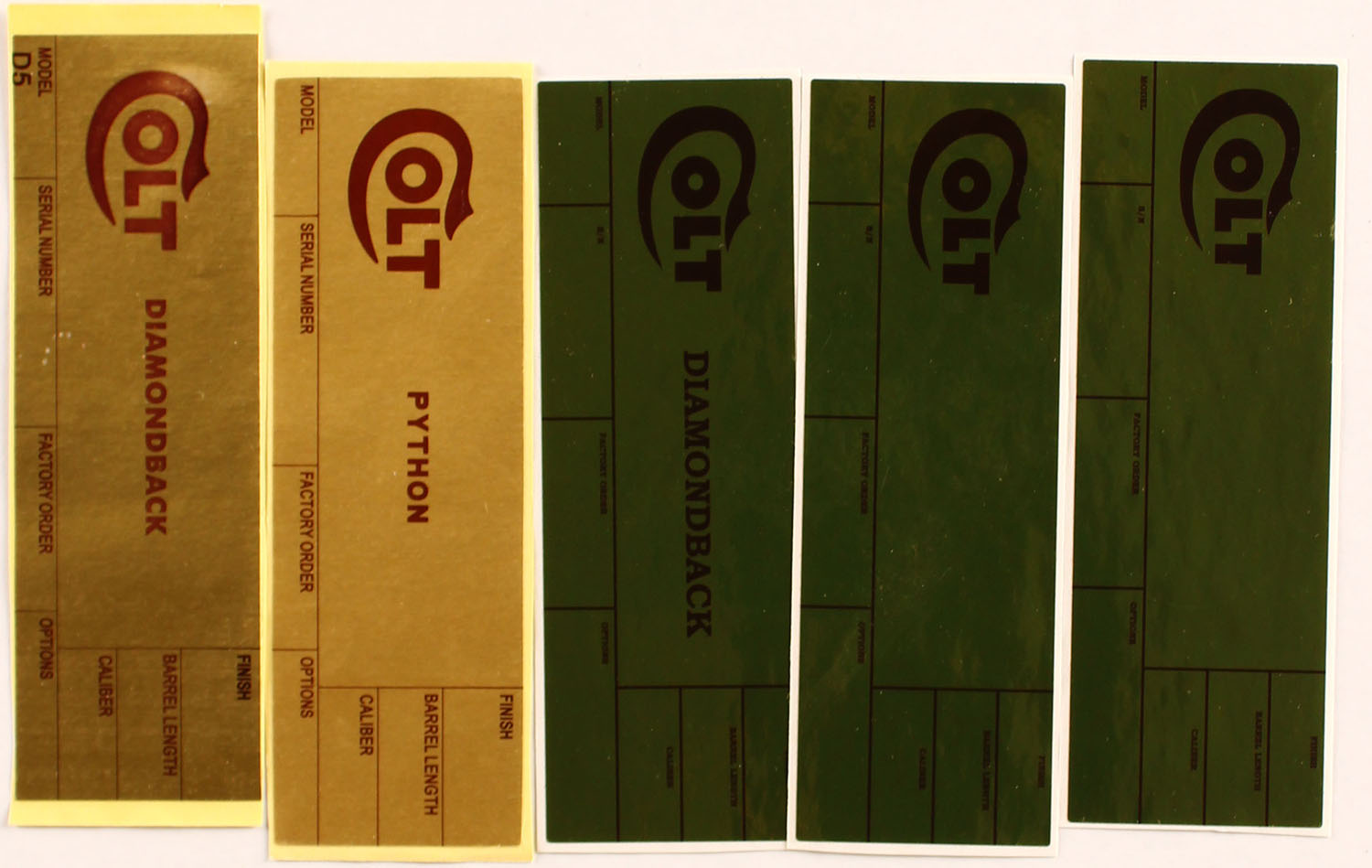 Set of Colt end labels for pistols. Grade: MINT - Value: 2 to 40