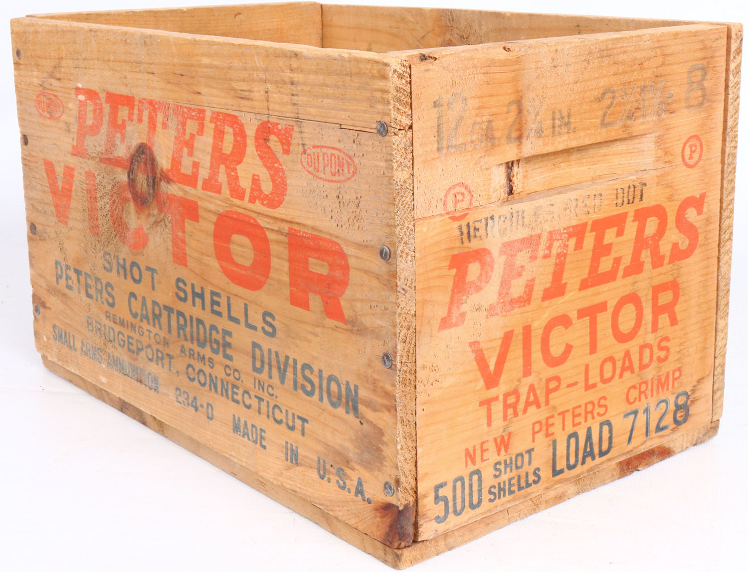 Peters Victor 16 ga., nail construction, orange & blue print is solid, crate is solid. Grade: Excellent - Value: 16 to 50