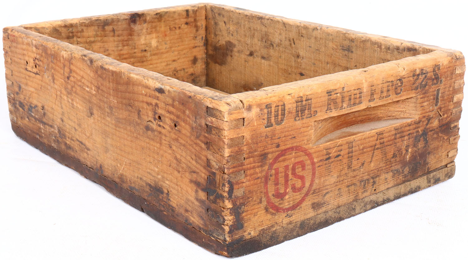 US 22 Short BLANK, tongue and groove construction wood shipping crate, red & black print is faded, crate has age soiling. Grade: Very Good - Value: 2 to 40