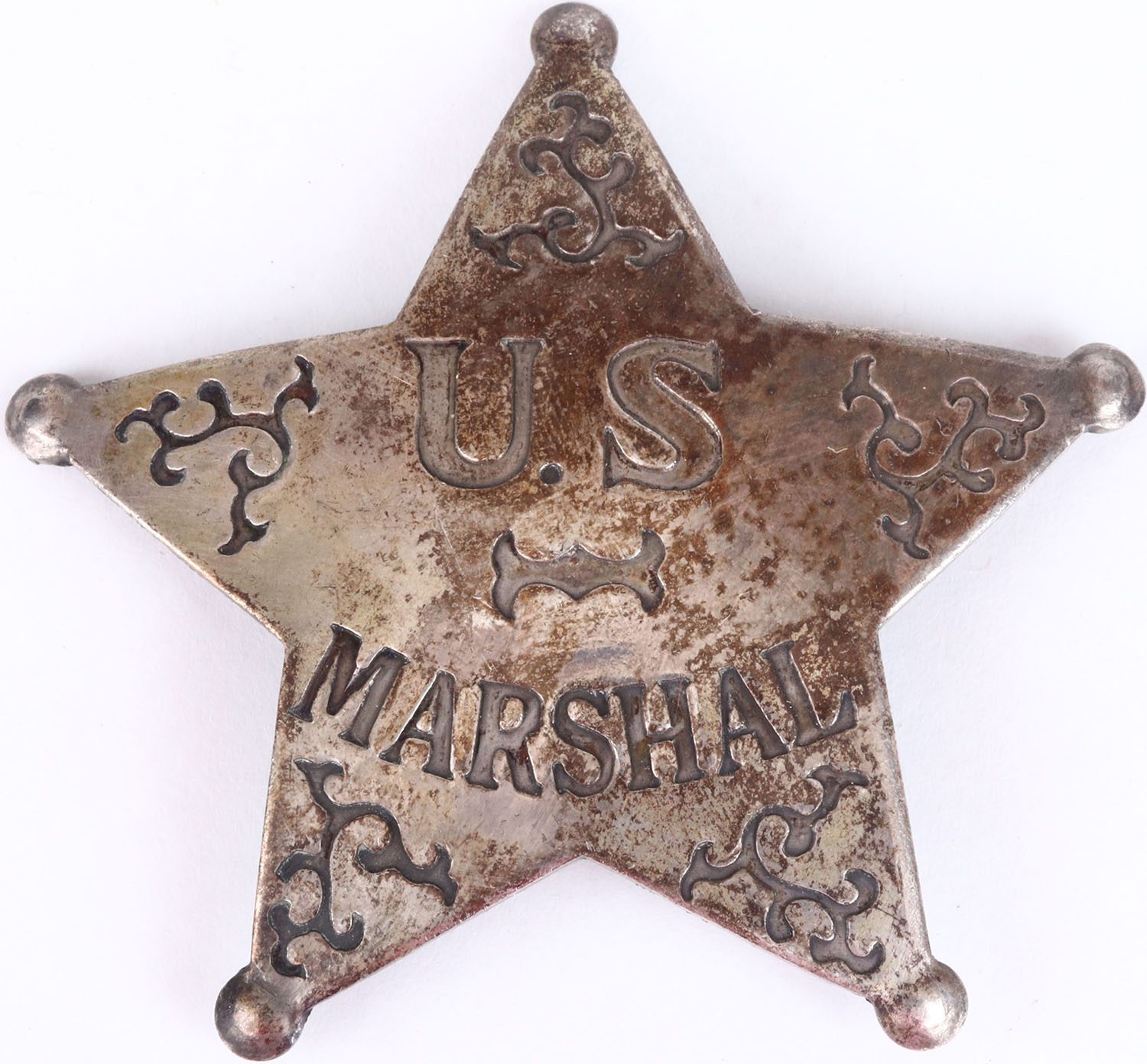 US Marshal badge, shows age soiling. Grade: Very Good ++ - Value: 100 to 400