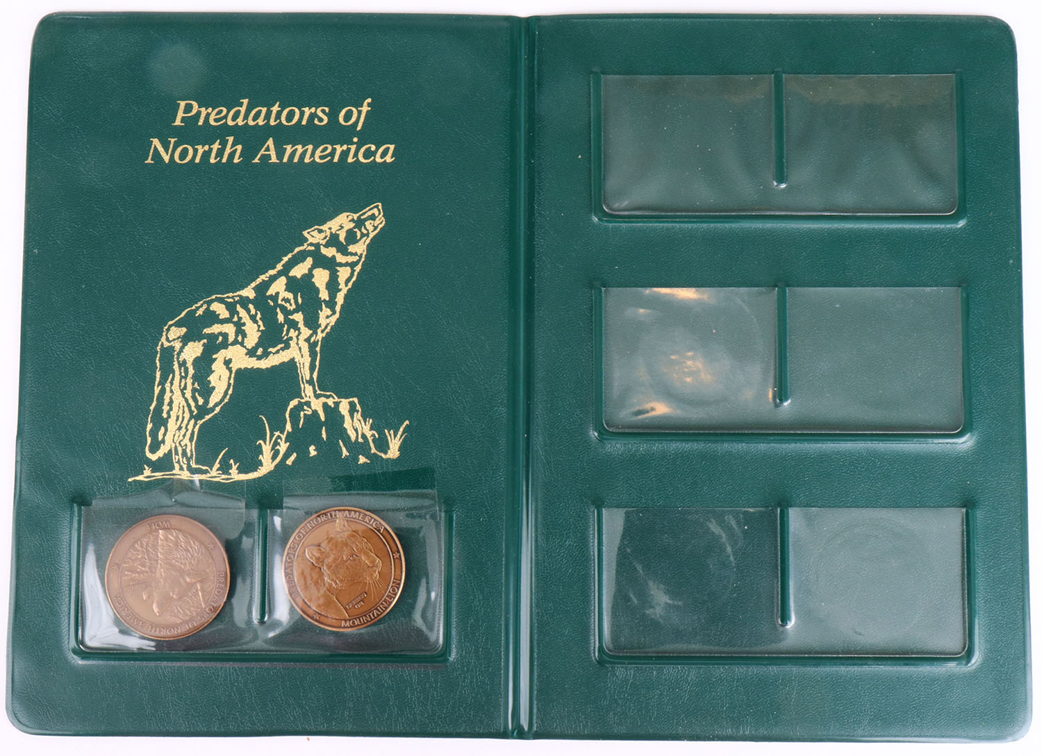 North American Hunting Club Predators of North America Collectors Series, only 2 coins inside. Grade: Excellent - Value: 2 to 50
