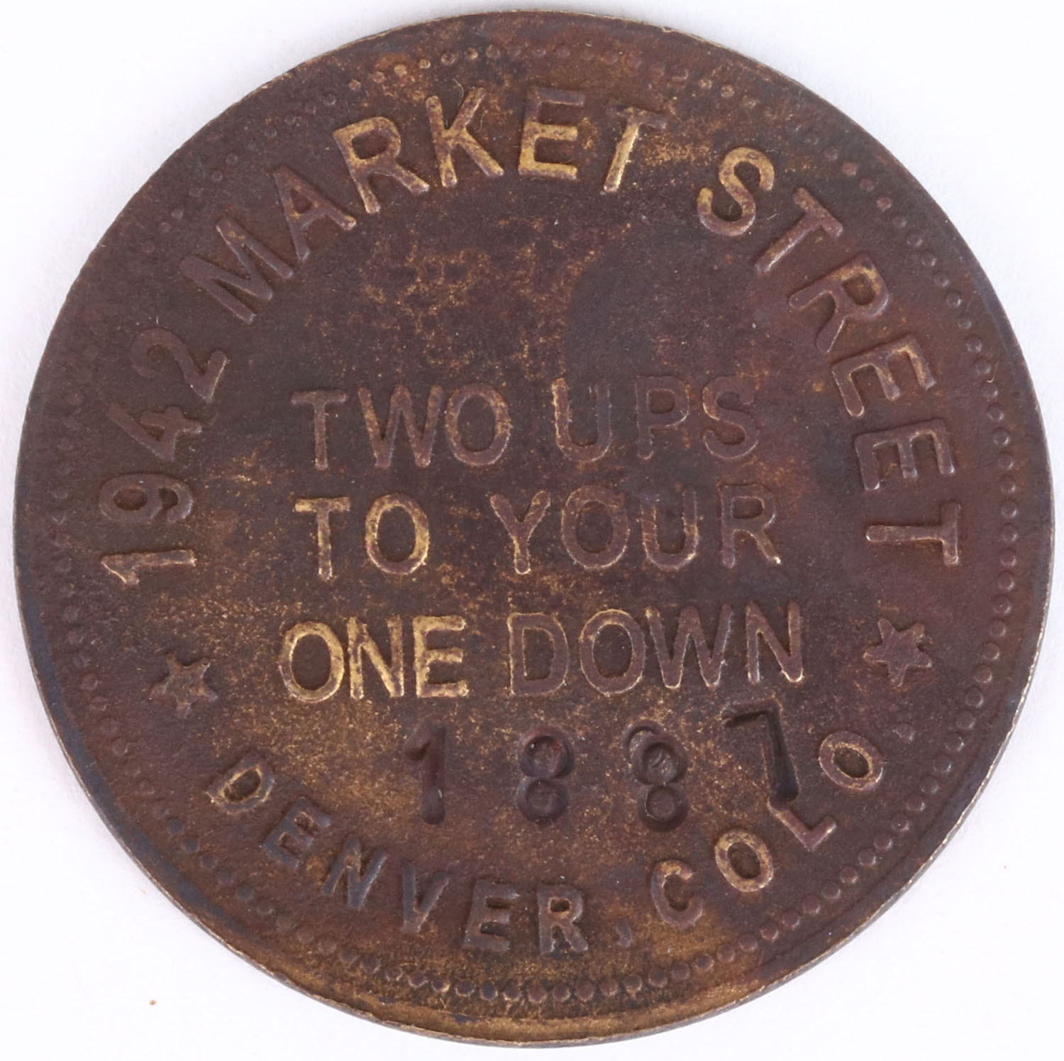 Solid Brass Brothel Token, dated 1887. Grade: Very Good ++ - Value: 40 to 100