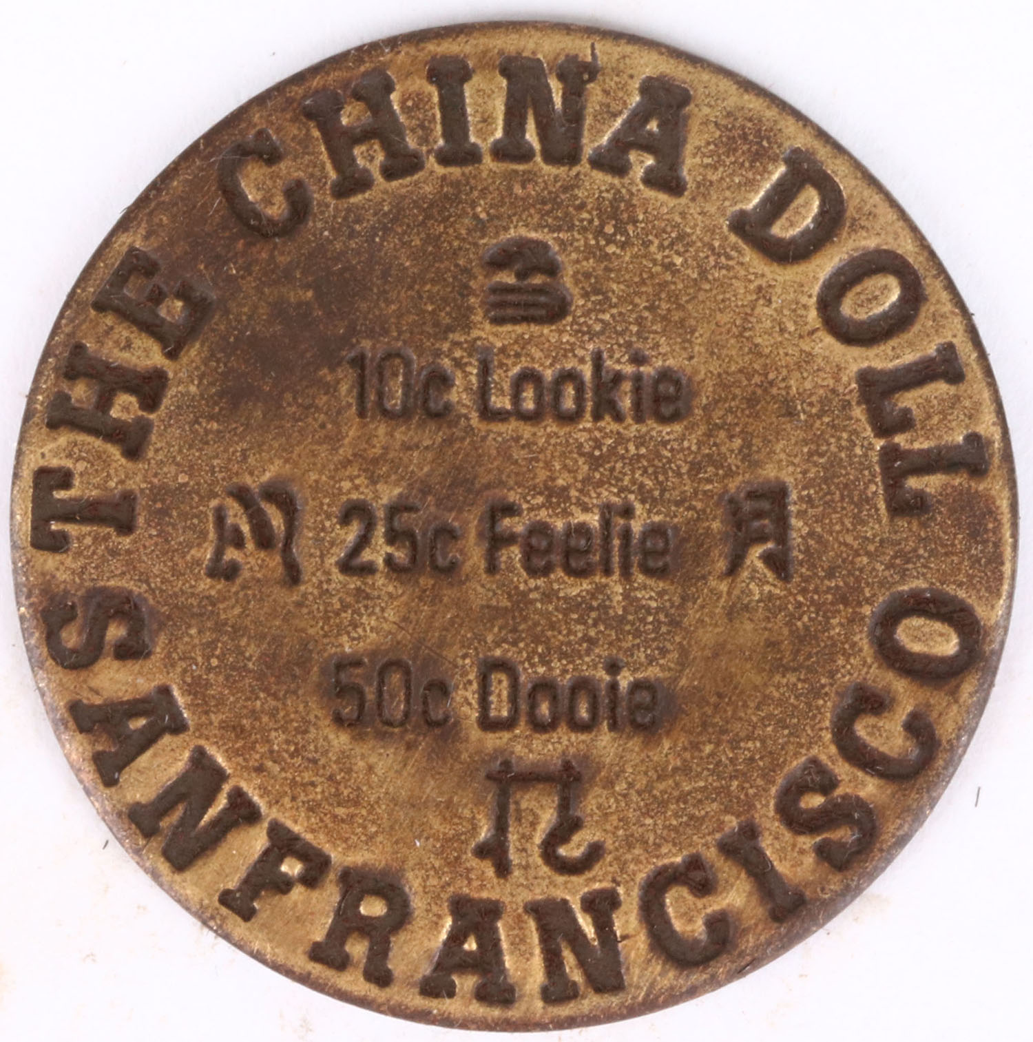 Solid Brass Brothel Token. Grade: Very Good ++ - Value: 30 to 90