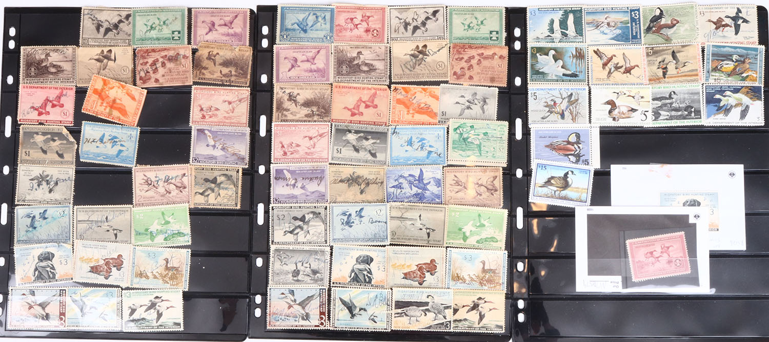 Very large lot of 75 bird hunting license and a poster, has first few years! some signed, some not, all bright and clean, 1930-1970s and 1 1998 dated. Grade: Excellent ++ - Value: 100 to 1000