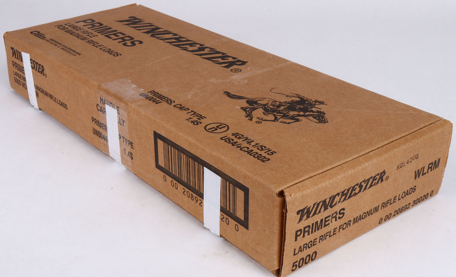 Winchester primer case, FULL, large Magnum rifle primers, 5000 in the brick, all bright and clean. Grade: Excellent ++ - Value: 50 to 500