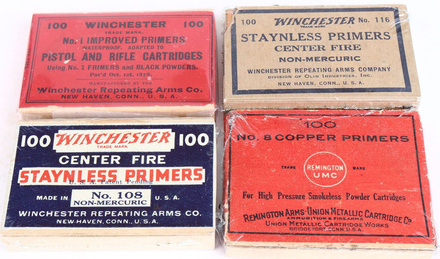 Lot of 4 primer boxes, all Partial. Grade: Very Good ++ - Value: 10 to 50