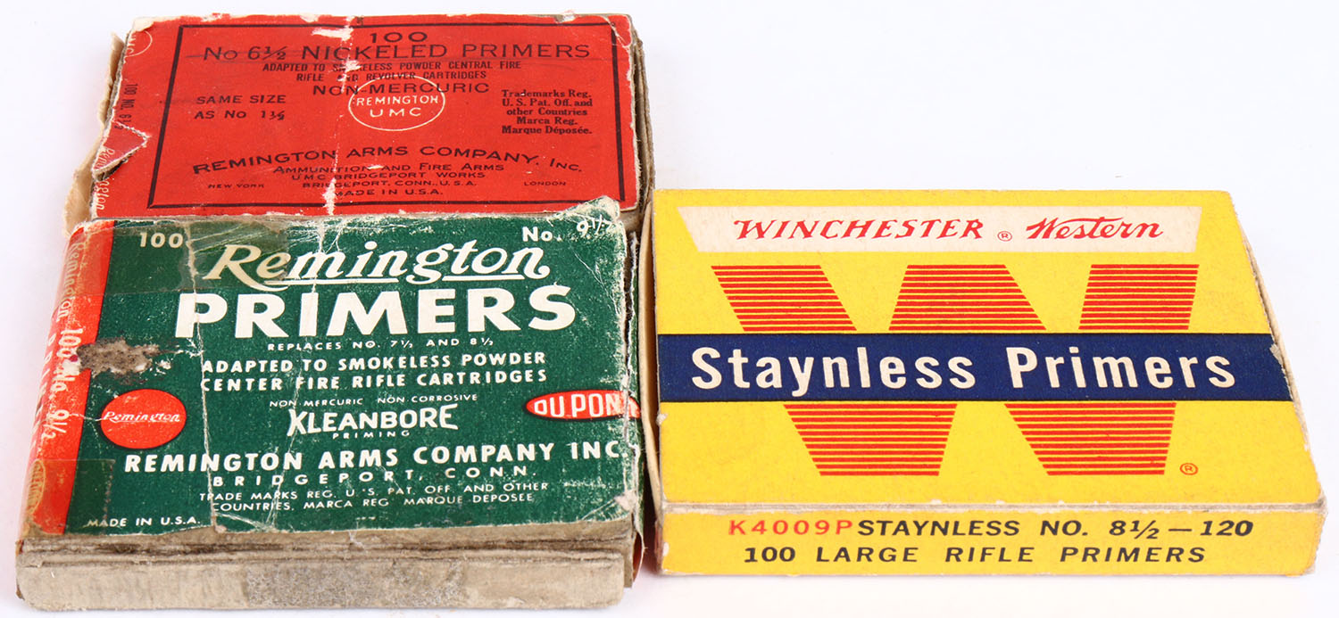 Lot of 3 primer boxes, all Partial. Grade: Very Good - Value: 2 to 20