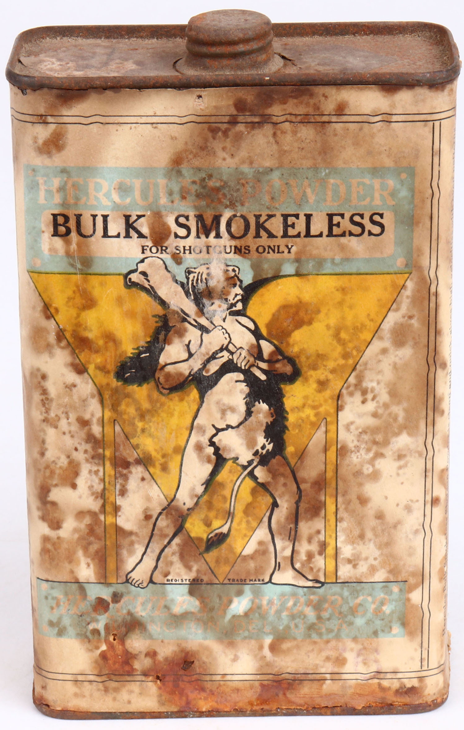 Hercules Gunpowder tin, Empty, has lots of age soiling. Grade: Good - Value: 2 to 20