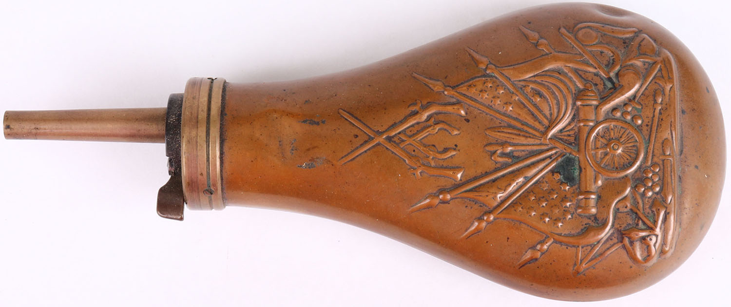 Brass powder flask, beautiful design, bright and clean. Grade: Very Good - Value: 10 to 60
