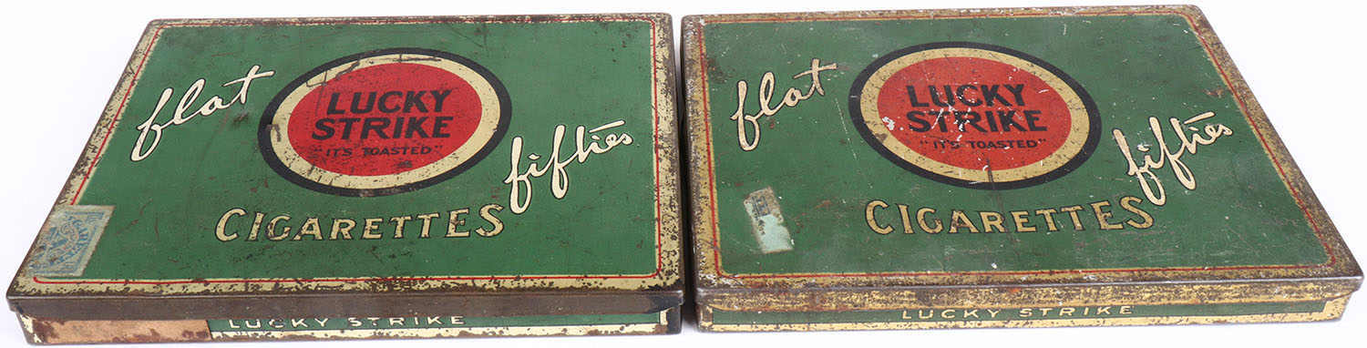 Lot of 2 Lucky strike cigarette tin, has some wear. Grade: Very Good ++ - Value: 6 to 40