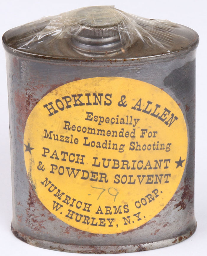 Hopkins & Allen lubricant tin can, has some rust, Partial, all still solid. Grade: Excellent - Value: 30 to 90