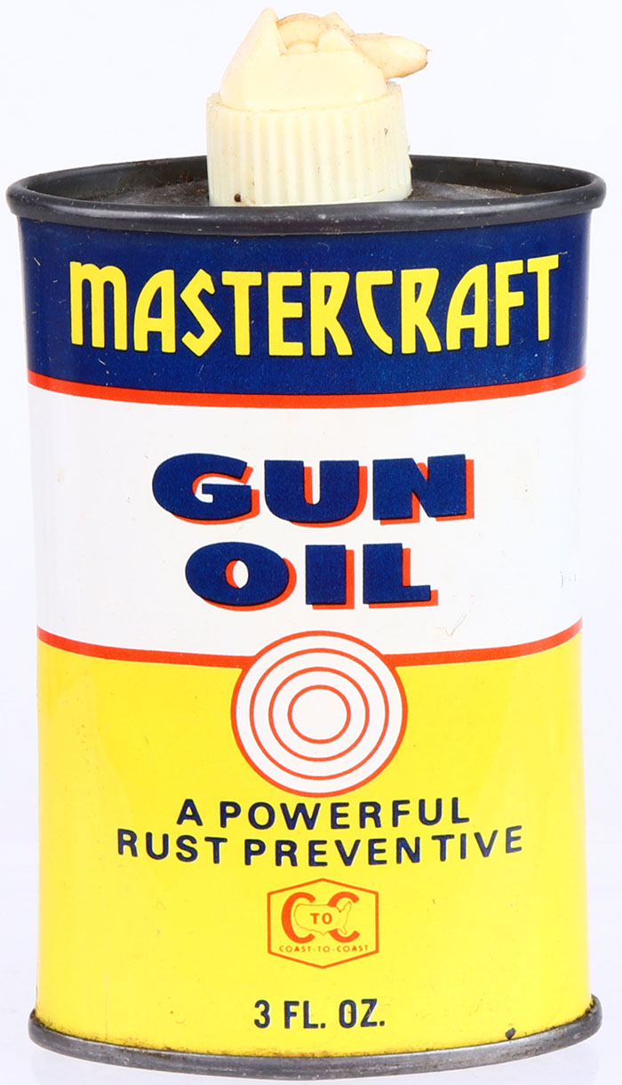 Mastercraft Gun oil tin, lead spout, Empty, all bright and clean. Grade: Excellent + - Value: 2 to 40