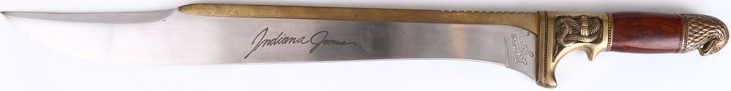 Very Large Indian Jones Bowie knife, 18'' blade, #UC501, no box or sheath, beautiful and intricate handle and pommel, blade is a little cloudy but still a little sharp. Grade: Excellent - Value: 50 to 300