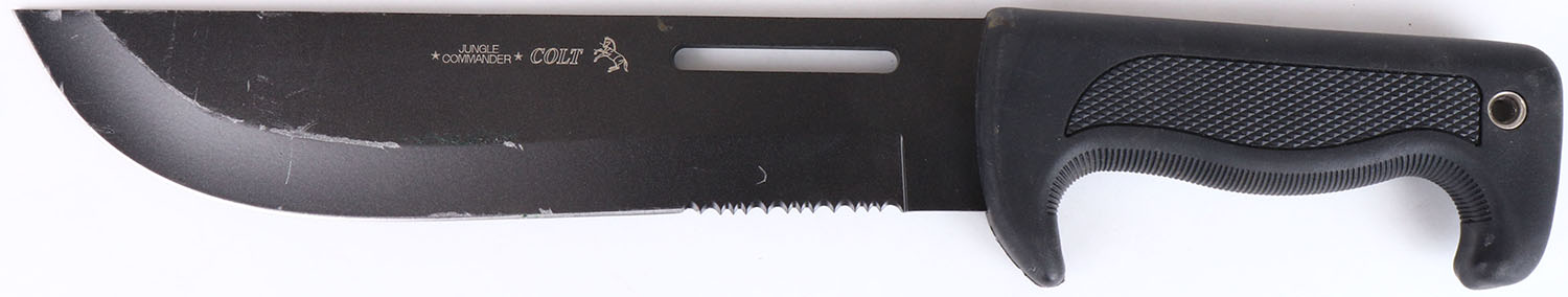 Large Colt Jungle Commander knife, 9 1/2'' blade, hard rubber handle, bright and clean. Grade: Excellent ++ - Value: 30 to 100