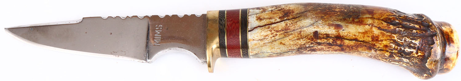 MIMS Fixed blade knife, bone handle, 4 1/2'' blade, some age soiling to blade. Grade: Very Good ++ - Value: 30 to 90