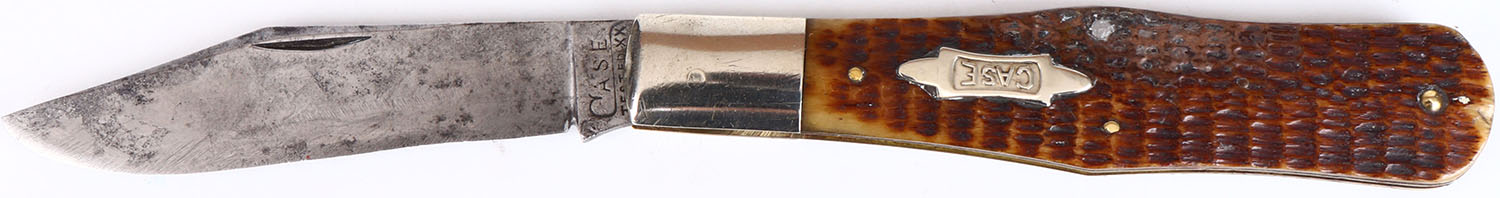 Early Case folding knife, 4'' blade, stag handle, blade and handle have age soiling, well marked. Grade: Very Good - Value: 50 to 150