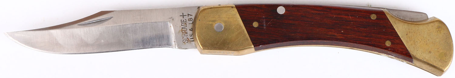 Schrade folding knife, 3 3/4'' blade, blade and handle have some age soiling. Grade: Very Good + - Value: 16 to 60