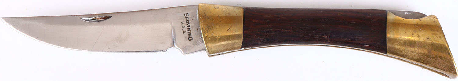 Browning folding knife, 4'' blade, blade and handle have some age soiling. Grade: Very Good ++ - Value: 40 to 150