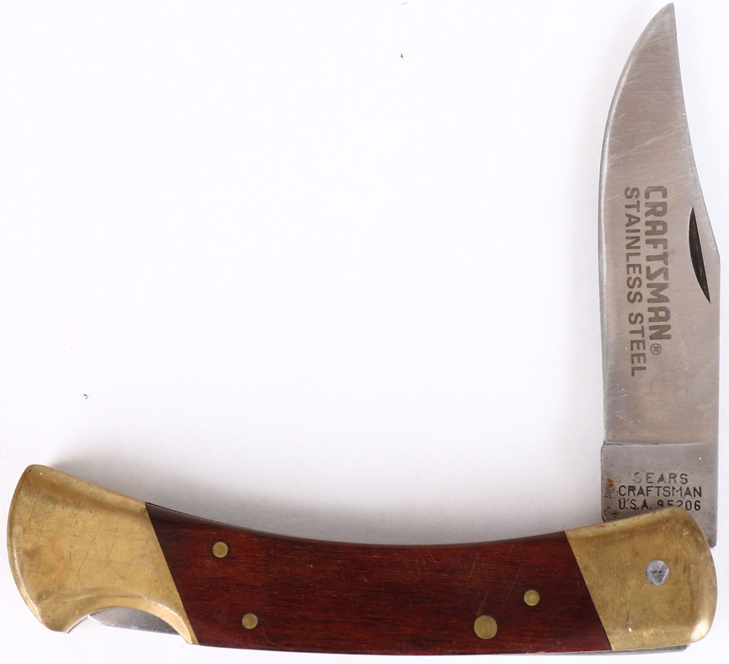 Sears Craftsman folding knife, 3 1/2'' blade, blade and handle have age soiling. Grade: Very Good - Value: 16 to 60