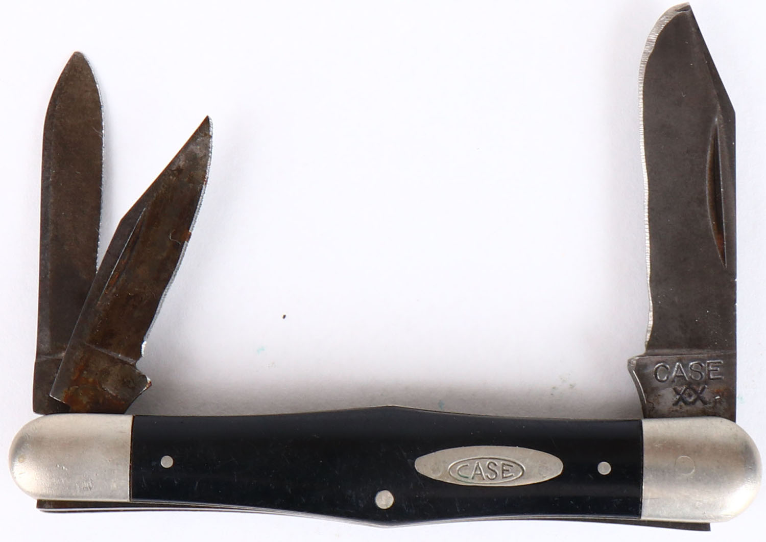 Case folding knife, 3 blades, 2'' longest blade, age soiling to blade. Grade: Very Good - Value: 20 to 80