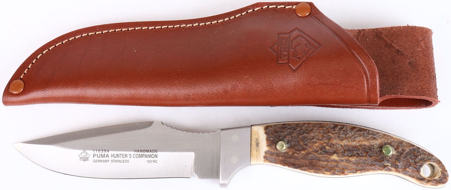 Puma fixed blade knife, with orignal box and sheath, all right and clean, 4'' blade. Grade: Excellent ++ - Value: 40 to 300