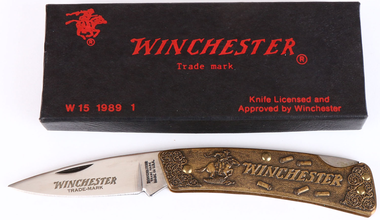 Winchester folding knife, W15 1989 1, with orignal box, all bright and clean, 2'' blade. Grade: Excellent - Value: 20 to 80
