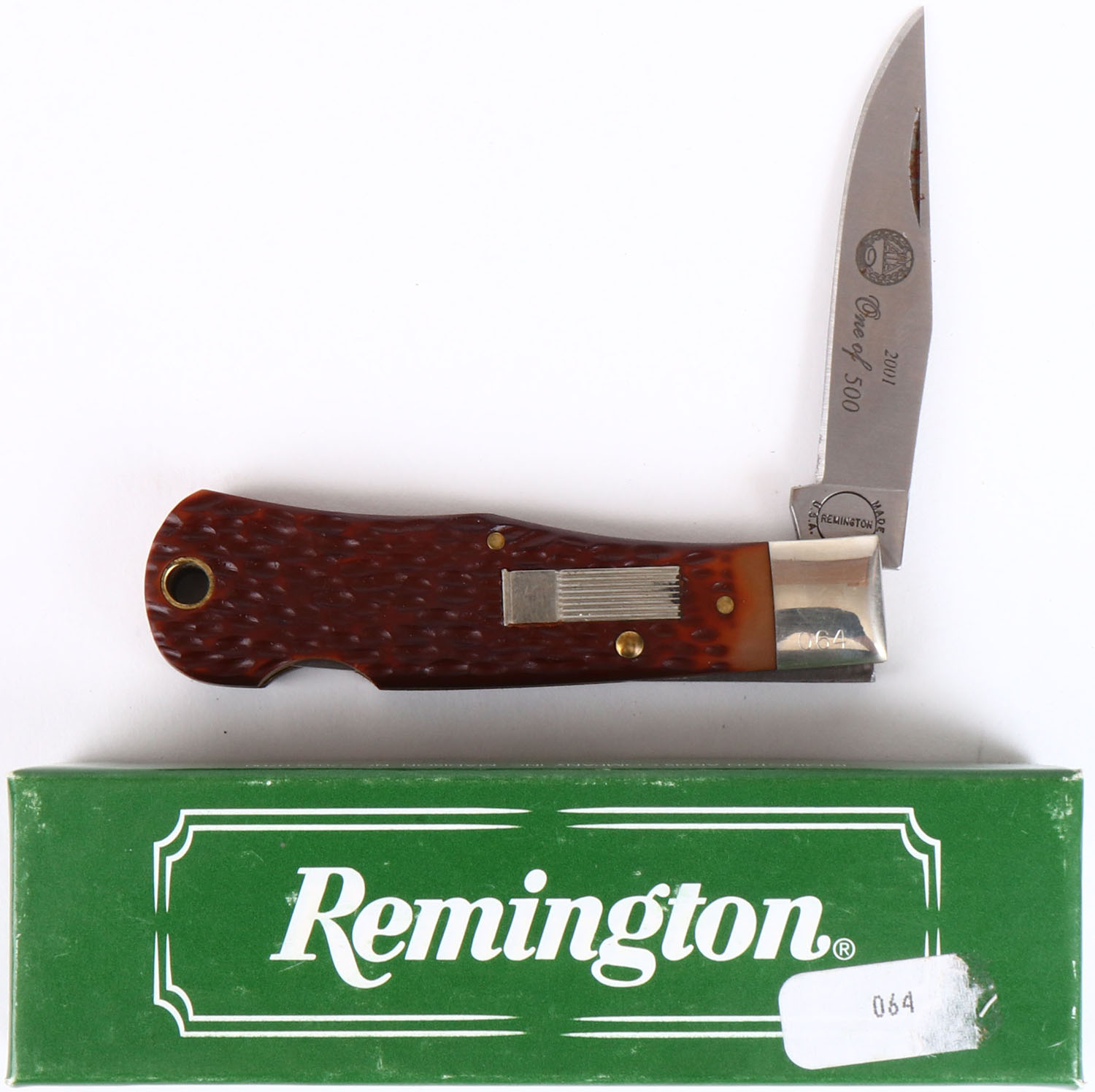 Remington folding knife with original box, 064, 3'' blade, all bright and clean. Grade: Excellent ++ - Value: 30 to 90