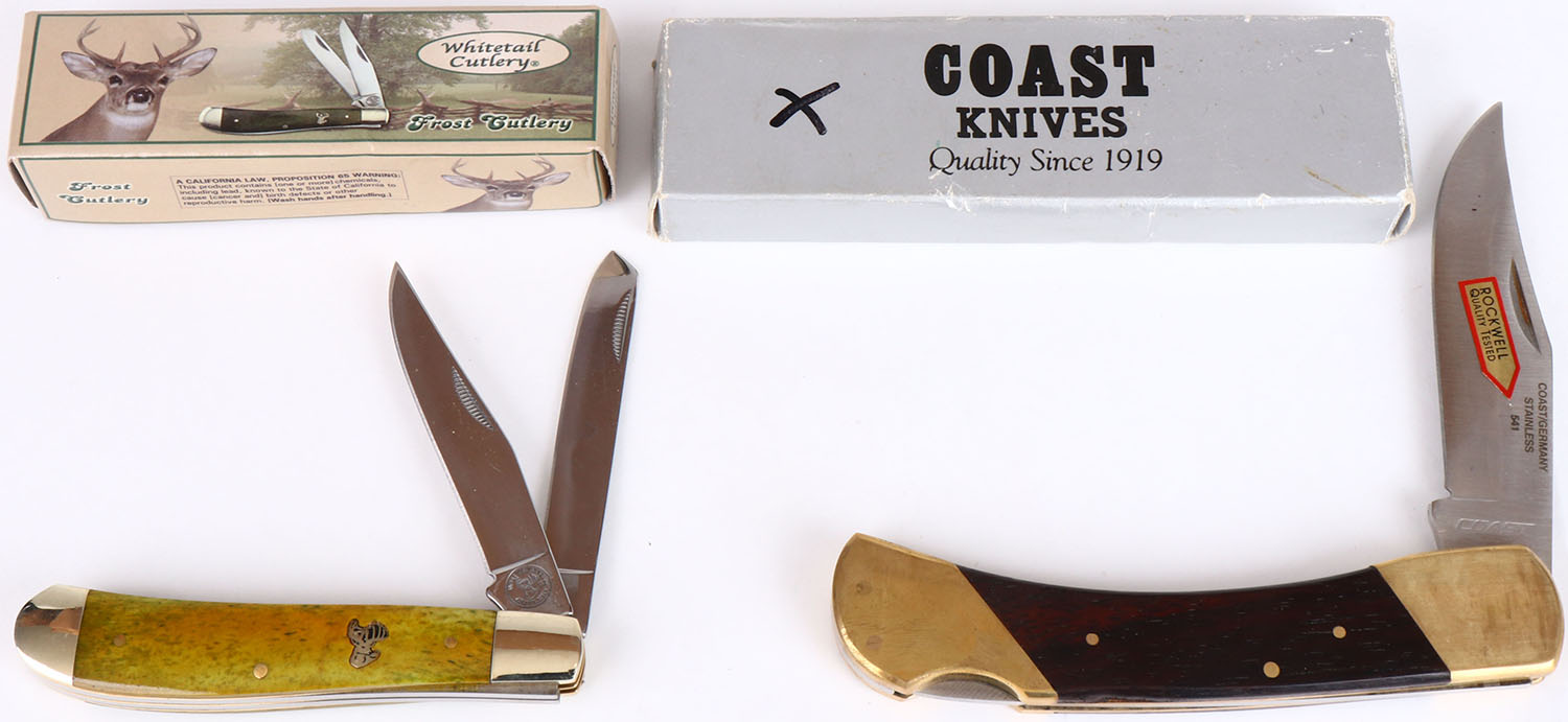 Lot of 2 folding knives in orignal boxes, Whitetail Cutlery and Coast knives. Grade: Excellent - Value: 2 to 60