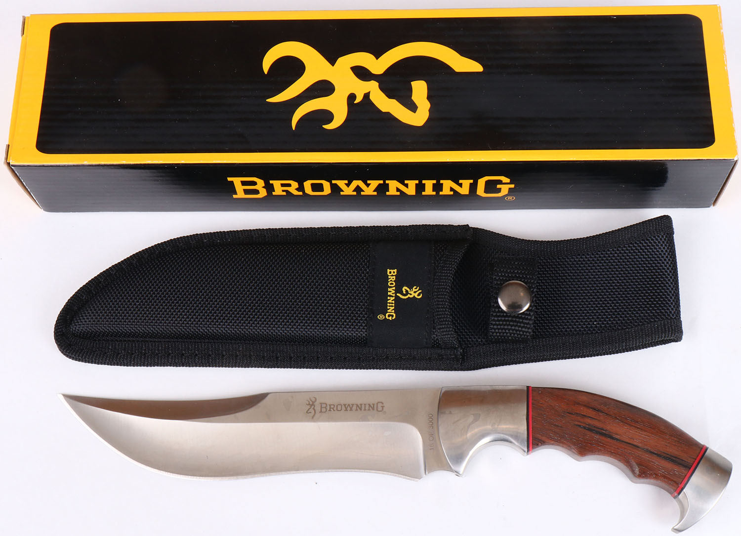 Browning fixed blade knife in orignal box, Model 317, 7'' blade, has sheath, NIB. Grade: Excellent ++ - Value: 40 to 150