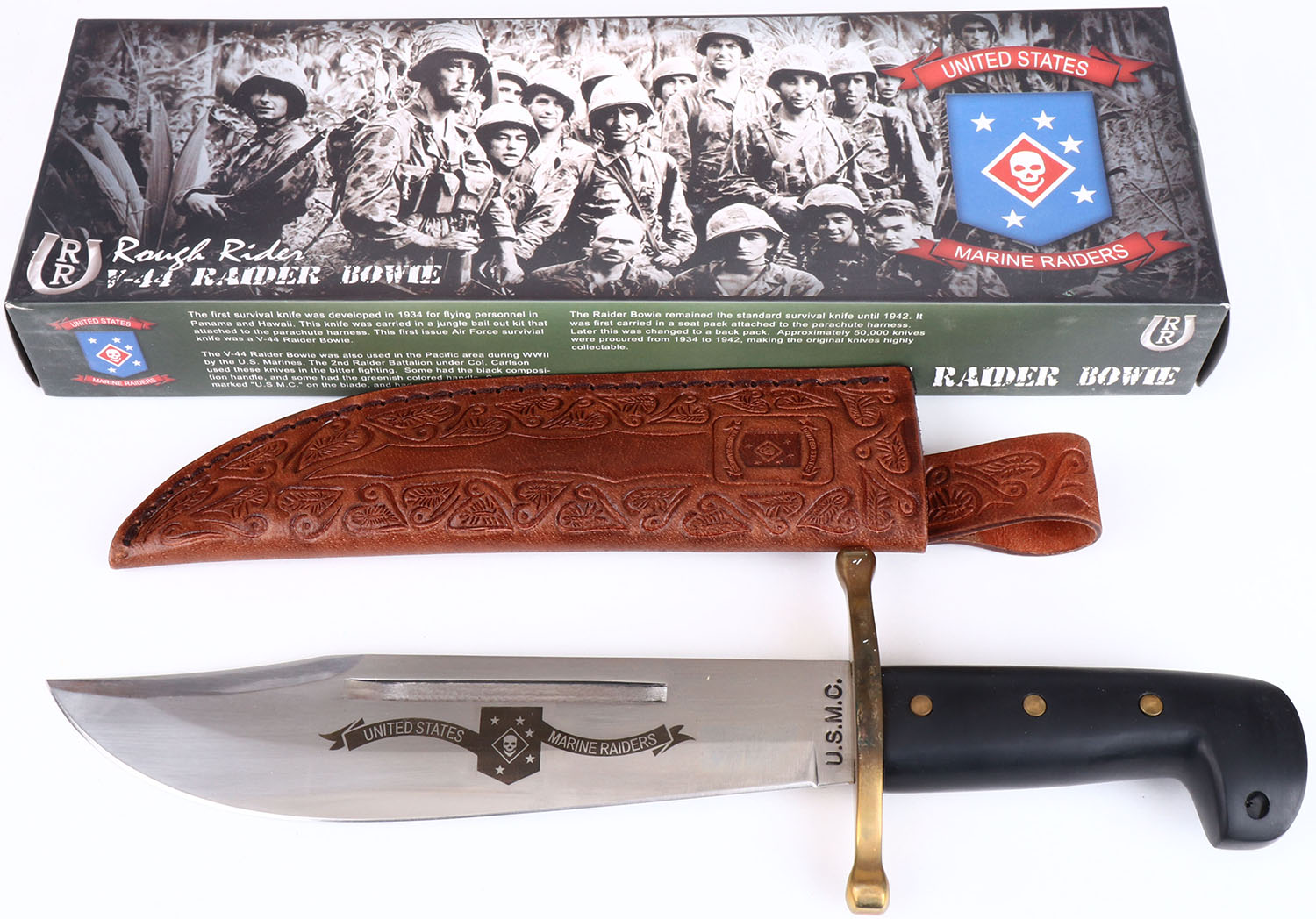 Large RR V-44 Raider Bowie knife in orignal box, 8'' blade, has sheath, NIB. Grade: Excellent ++ - Value: 40 to 150