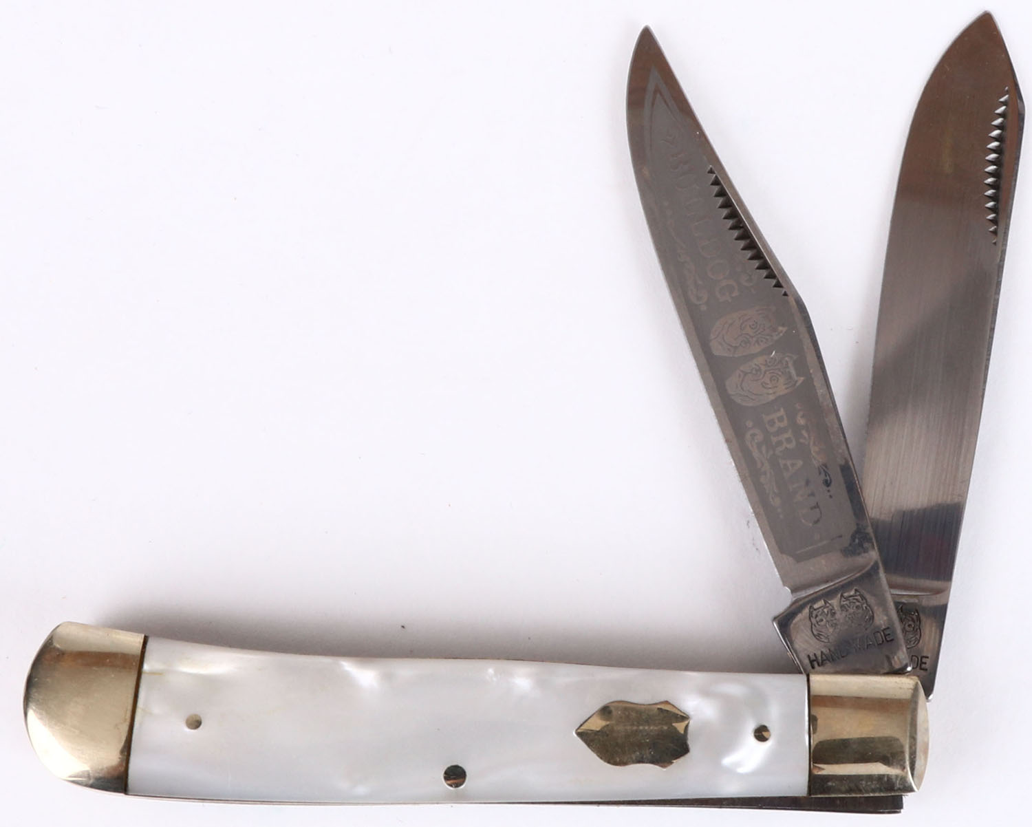 Bulldog Brand folding knife, 3'' blade, all bright and clean. Grade: Excellent - Value: 16 to 60