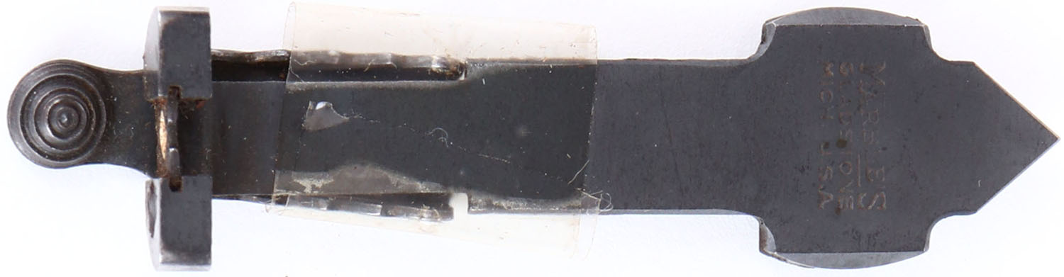 Marbles carbine rear sight with elevator, all bright and clean. Grade: Excellent - Value: 6 to 60