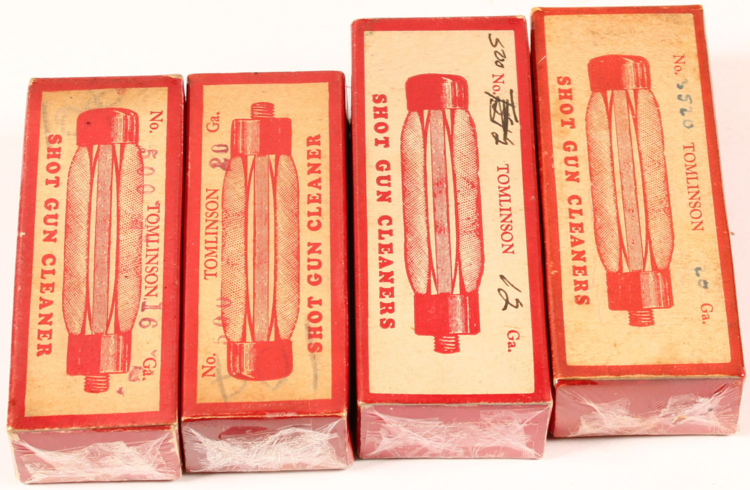 Lot of 4 Shotgun cleaner, in orignal boxes, 12 ga., 16 ga and 20 (2) ga. Grade: Very Good - Value: 10 to 50