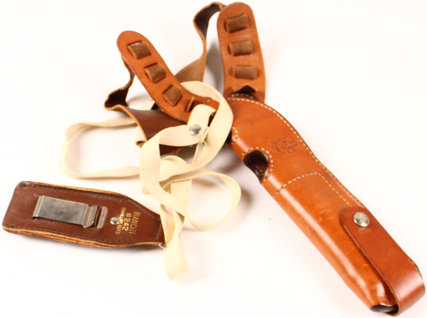 Bianchi X-2000 9mm auto. Leather holster, bright and clean. Grade: Excellent - Value: 10 to 50
