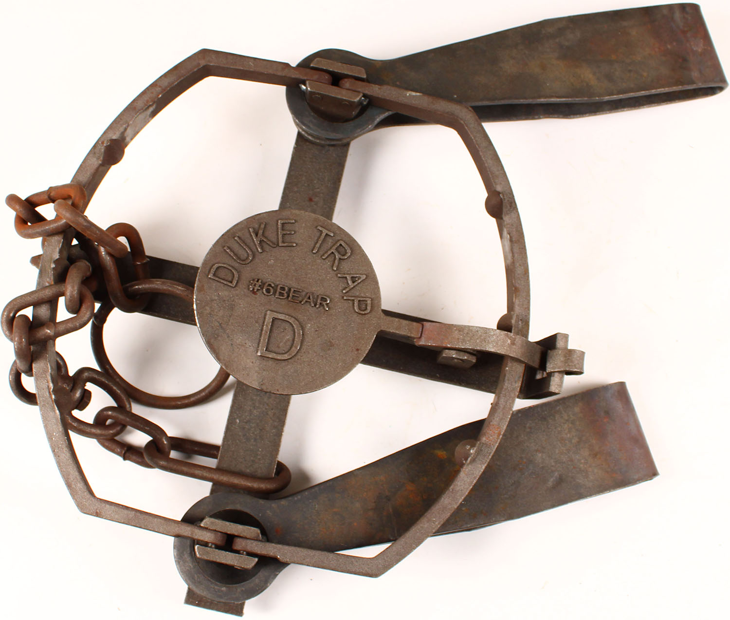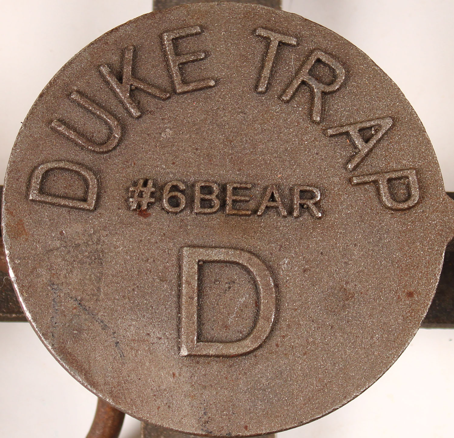 RARE! DUKE Bear Trap, ''#6 Bear'', very bright and clean with almost no rust. 16'' x 16'' trap mouth when open. Grade: Excellent - Value: 300 to 1000