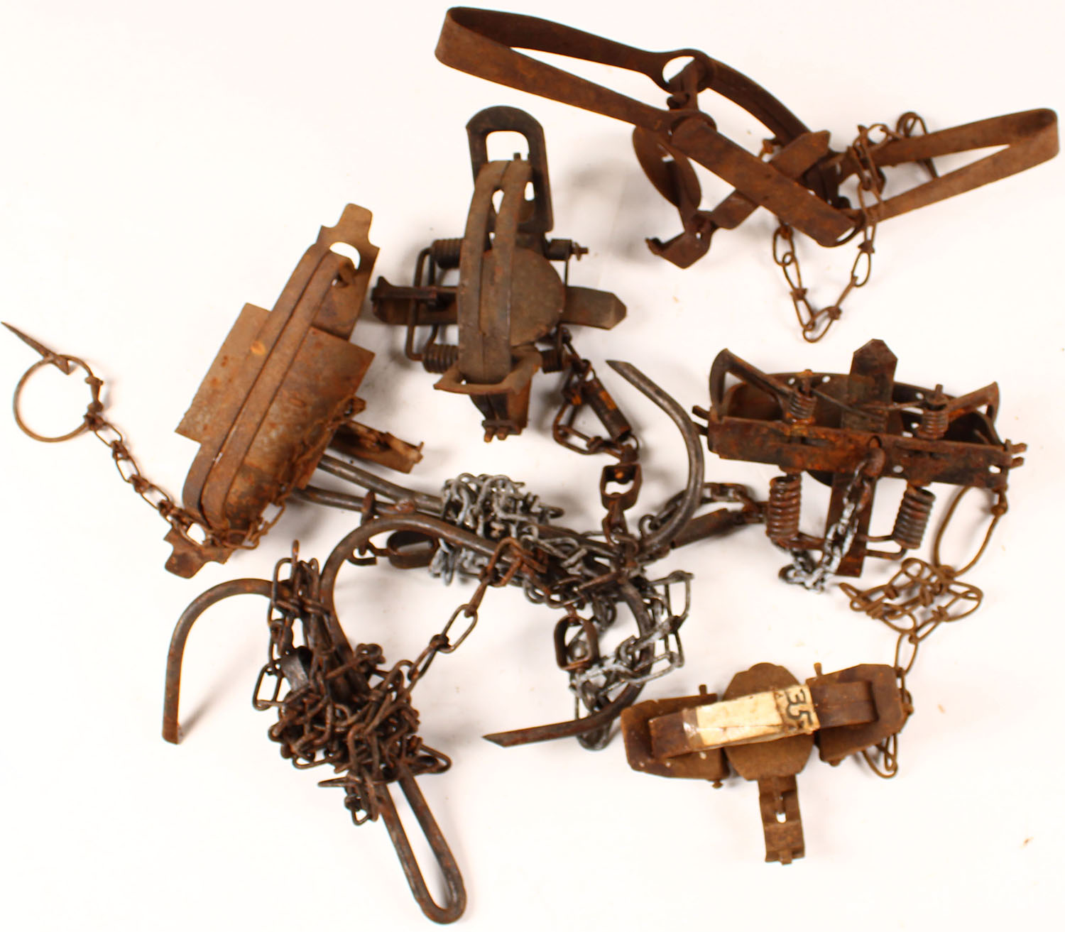 Large lot of Metal animal traps, all have rust. Grade: Very Good - Value: 20 to 100