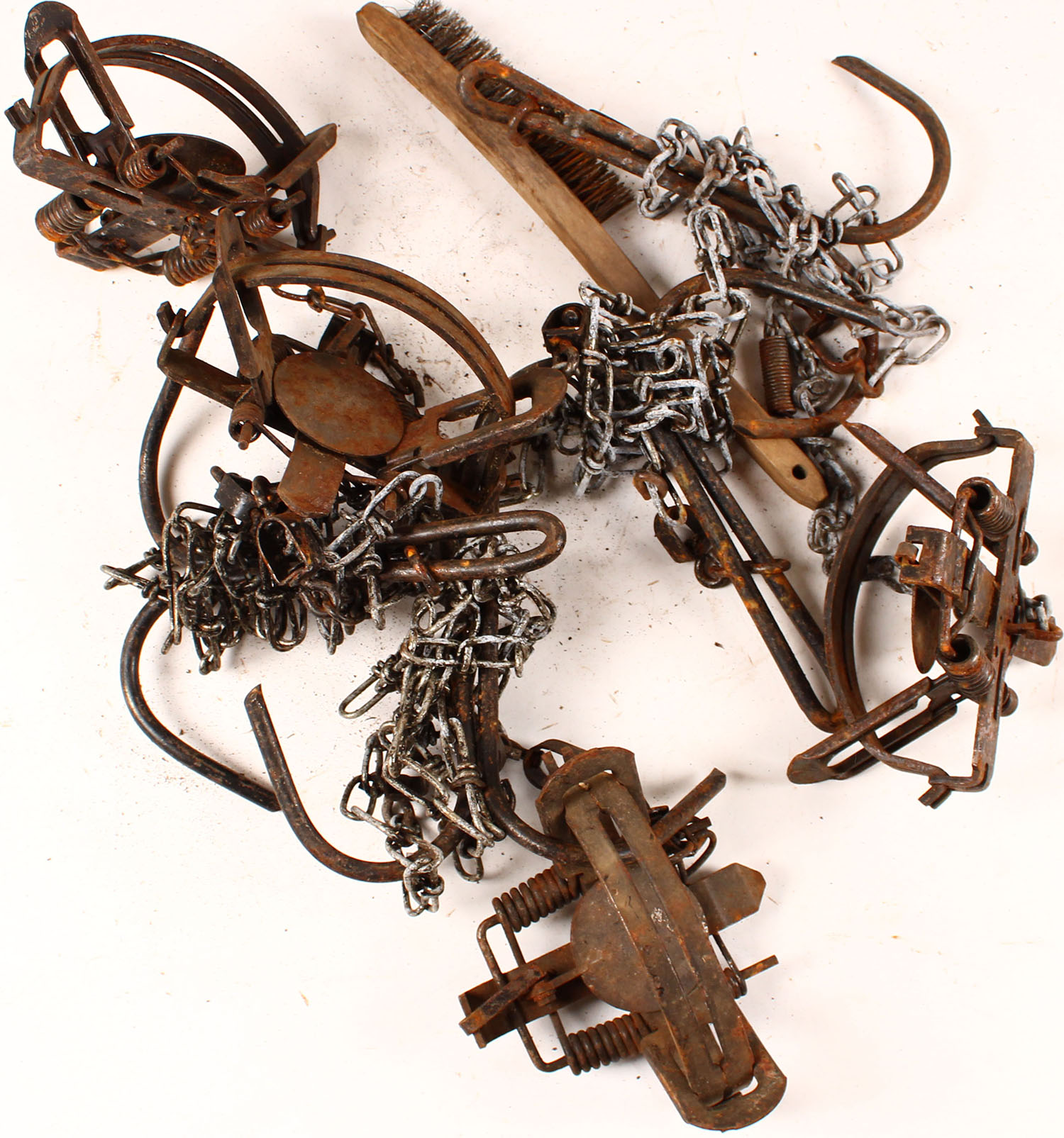 Large lot of Metal animal traps, all have rust. Grade: Very Good...