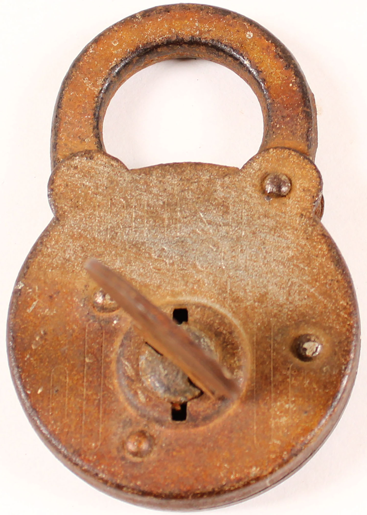 Antique Small ''Treese Secure Lever''? steel padlock, key is stuck inside, has rust. Grade: Very Good - Value: 2 to 40
