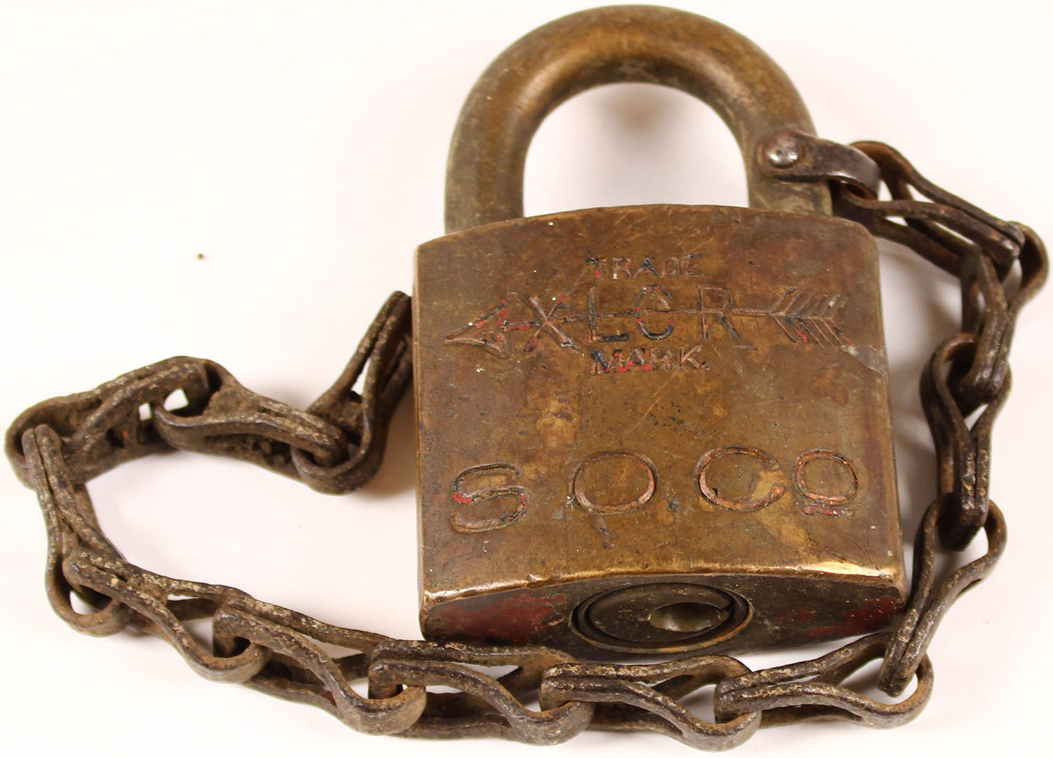 Antique ''So Co. XLCR'' brass padlock, has rust. Grade: Very Good - Value: 2 to 100