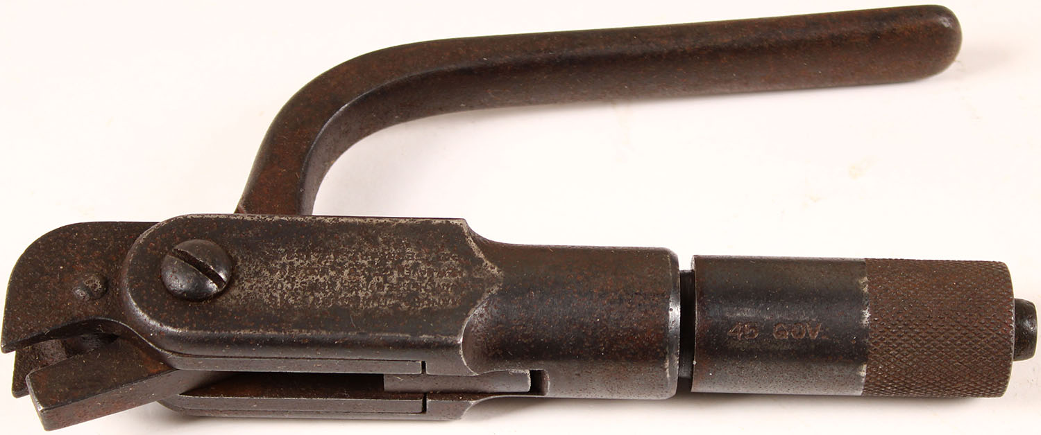 Winchester Reloading tool for .45 GOV., has age soiling and is rust. Grade: Very Good - Value: 50 to 200