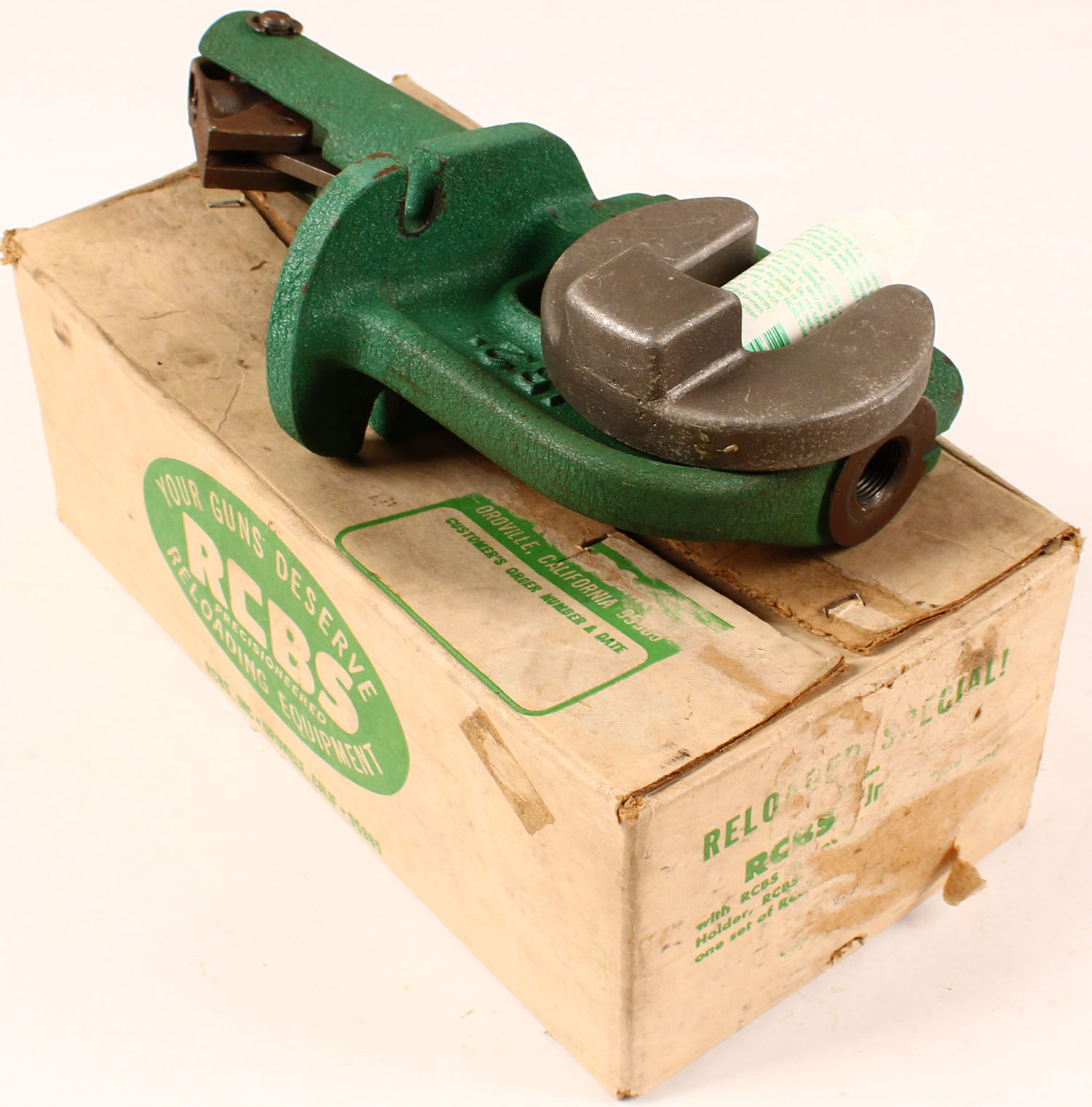 RCBS reloading press, in orignal box. Grade: Excellent - Value: 20 to 100
