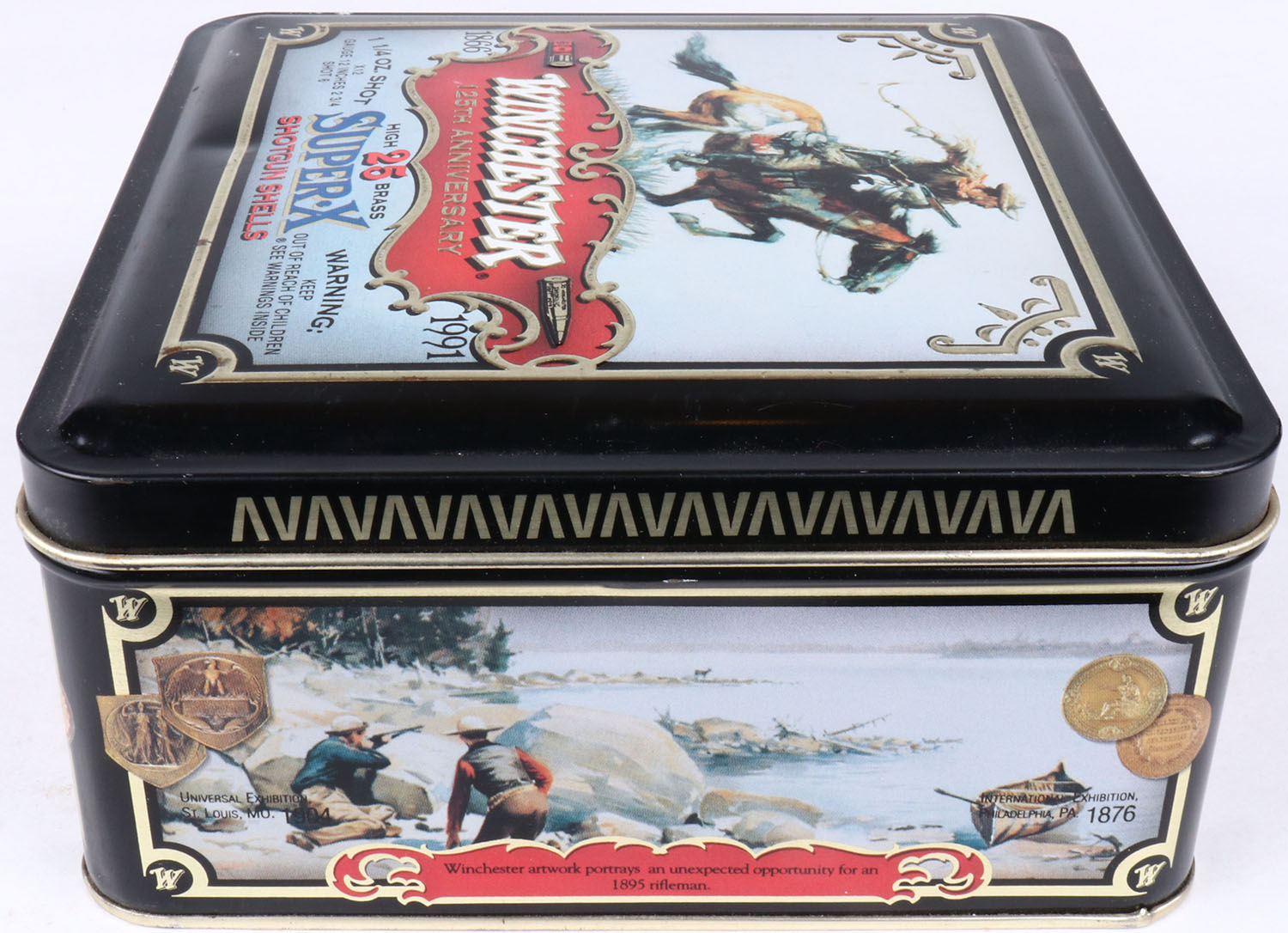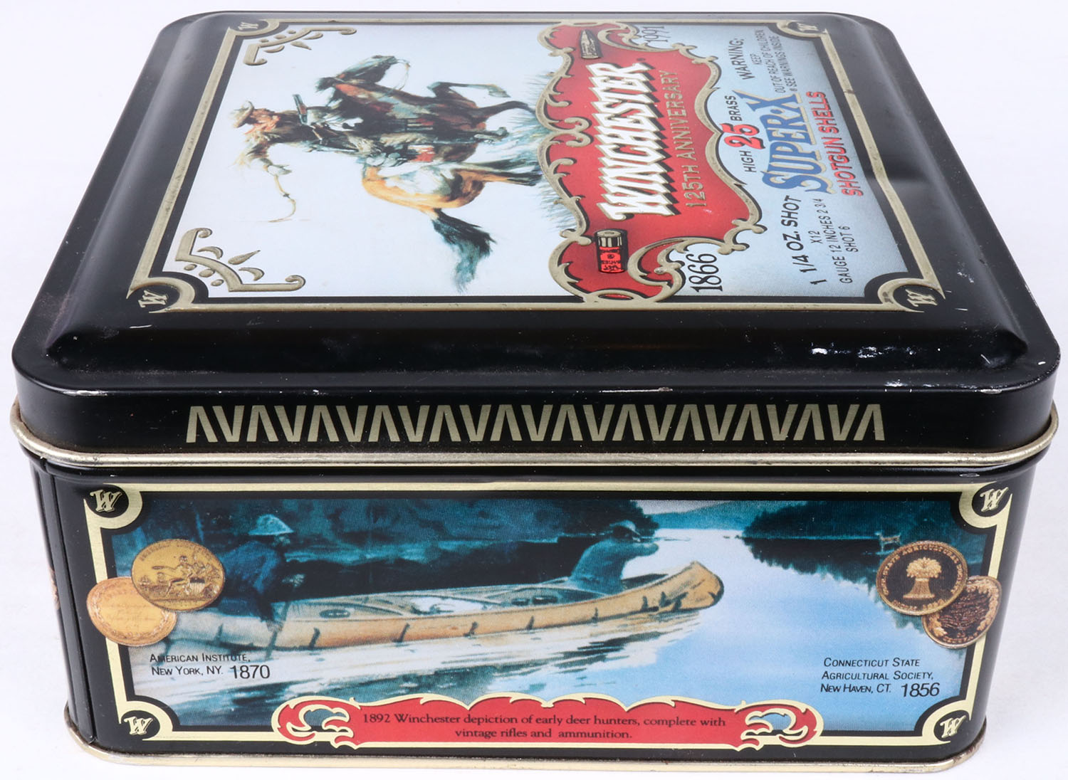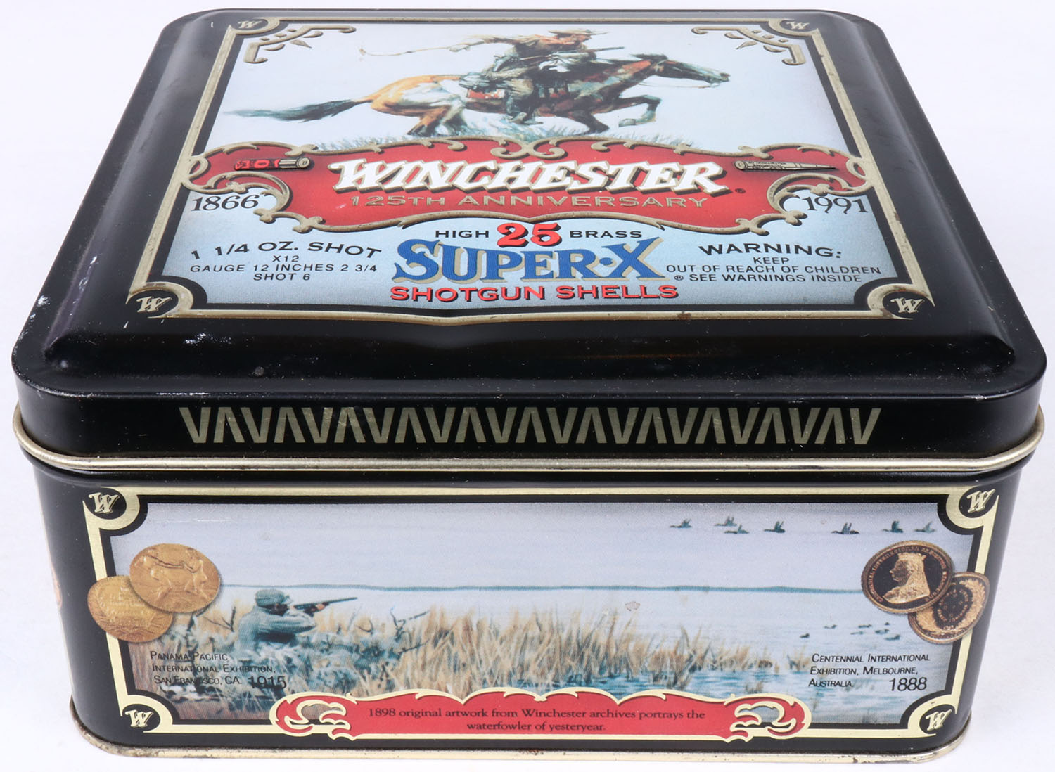Winchester, Super-X 125th ANNIVERSARY, 1866-1991, 12ga., 2pc., FULL, 25 count metal tin. Grade: MINT - Value: 20 to 60