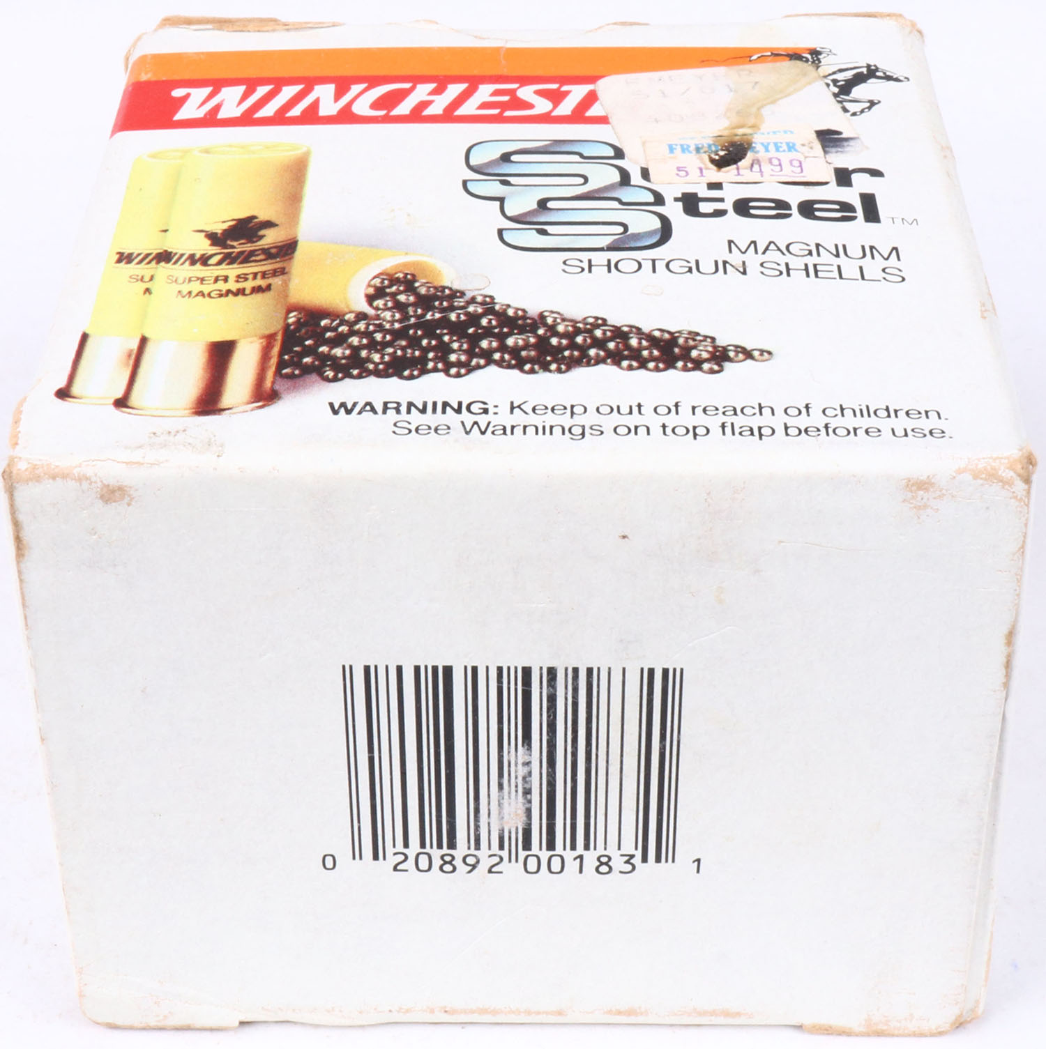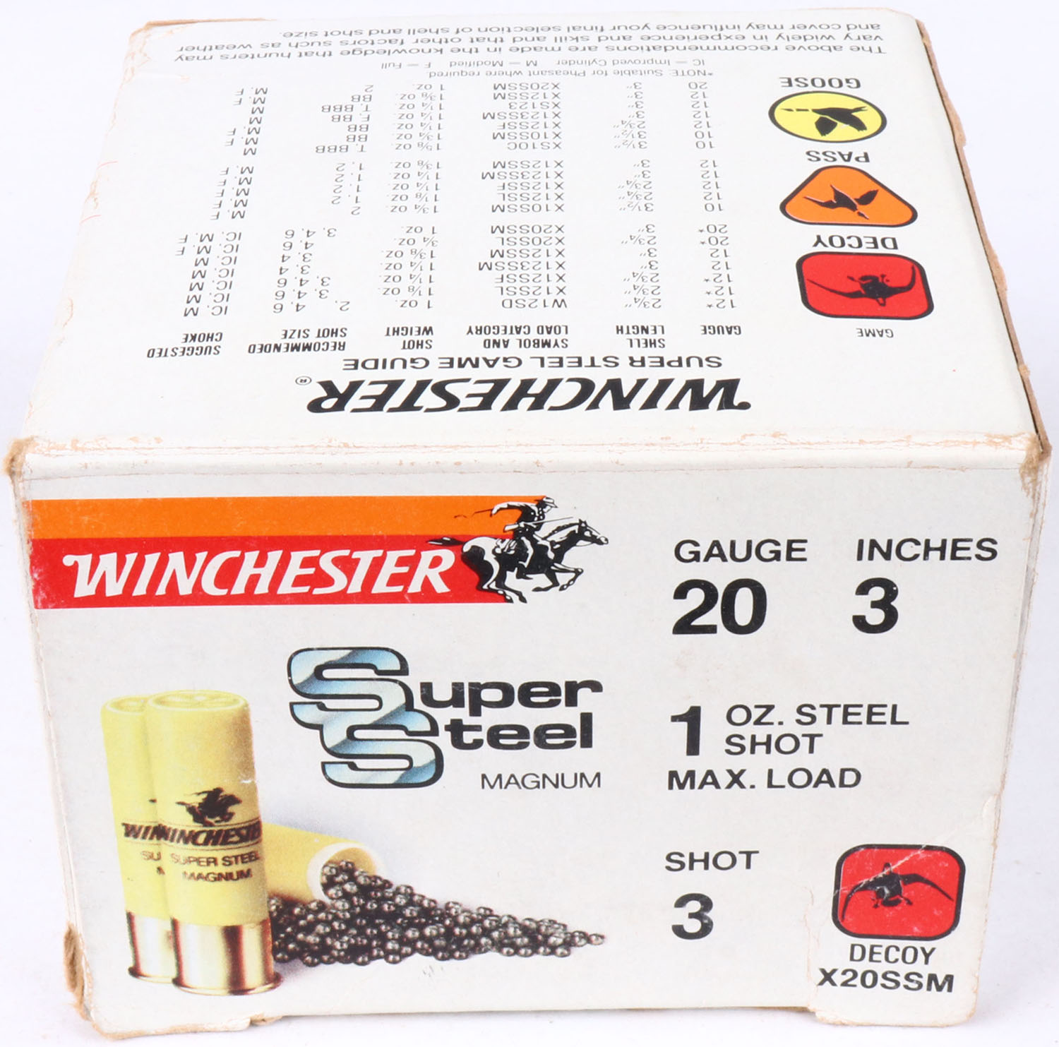 Winchester, Super Steel Magnum, 20ga., Full with 11rds being correct, shot size 3, multi-colored box, solid box, ammo is excellent. Grade: Excellent - Value: 8 to 20