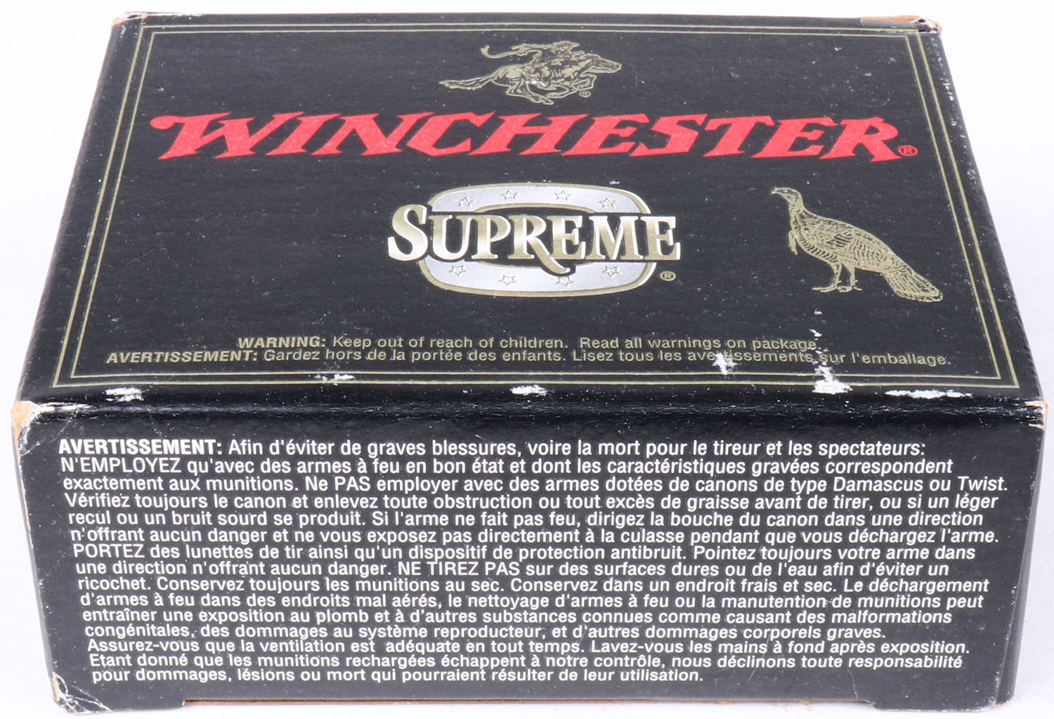 Winchester, Supreme Turkey Loads, 12ga., 1pc., Full, shot size 4, box is solid & shells are excellent. Grade: Excellent + - Value: 8 to 30