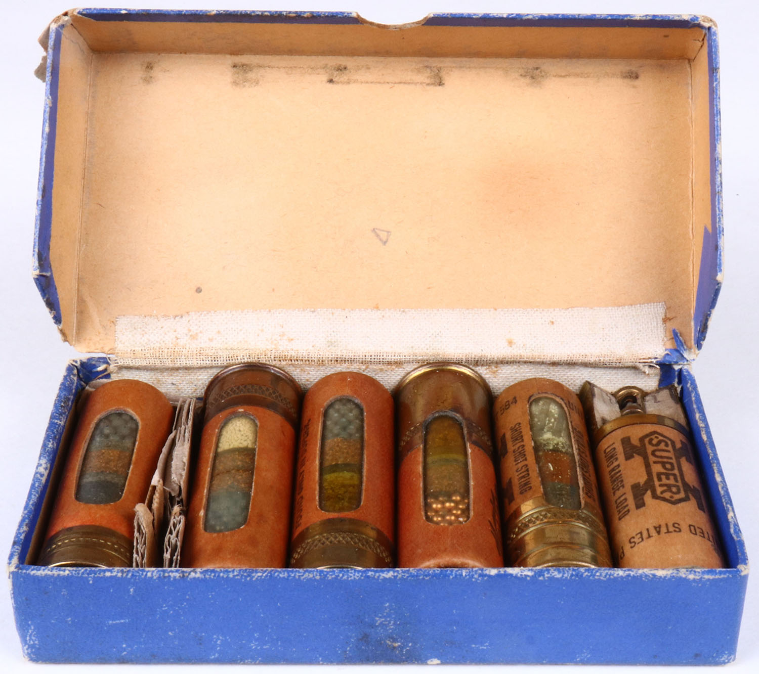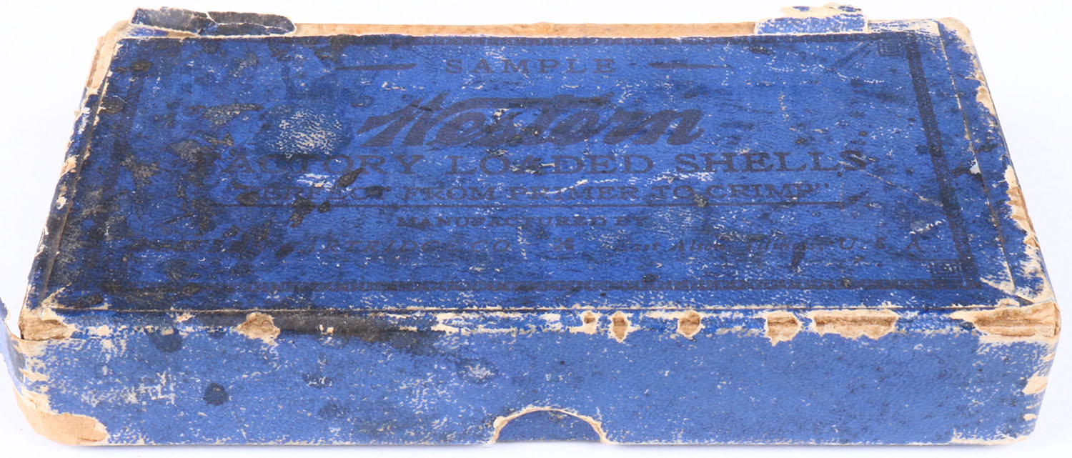Western Salesman Sample Window Shell Set, 5 Window shells & cut away shell, shells inside are good, has Xpert, Field & Super X Shells, box has edge wear, age soiling & seam split. Grade: Very Good + - Value: 100 to 300