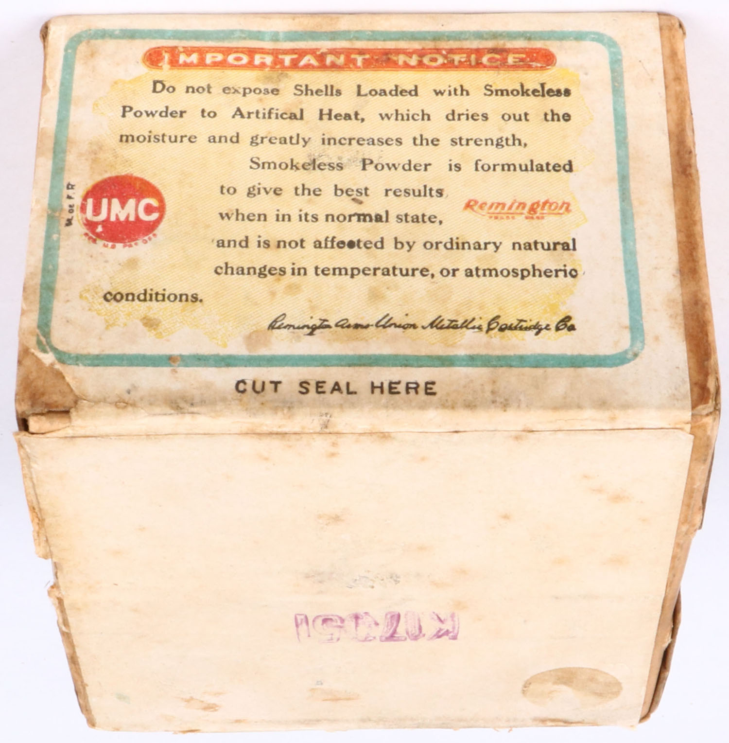 RARE REM U.M.C. Nitro Club, 28 GAUGE, 2pc., FULL & SEALED, shot size 7 CH, buff box with sunburst logo & Mallard flying on top, box is very solid with great label, box has light age soiling, RARE IN 28 GAUGE! Grade: Excellent + - Value: 200 to 800